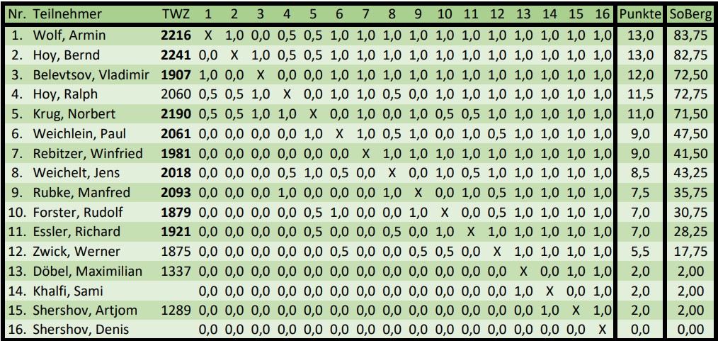 Turnierergebnis (Zum Vergrößern auf Bild klicken)